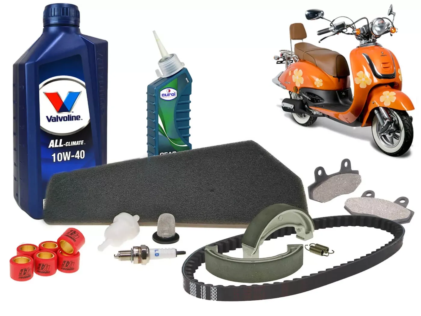 Complete onderhoudskit met alle benodigde onderdelen om je scooter in top conditie te houden.
