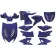 11 delige set in blauwe (glimmende) kleur, betreft de gespoten delen.