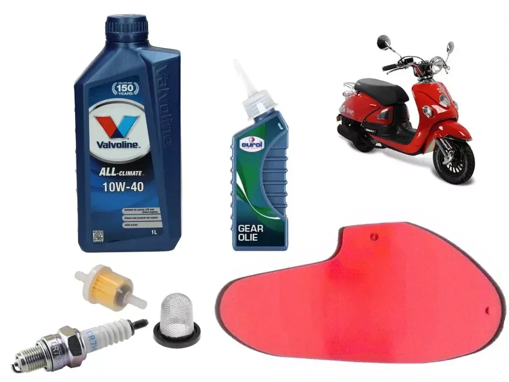Complete onderhoudskit met alle benodigde onderdelen om je AGM Joy/Fosti Faeder scooter in top conditie te houden.