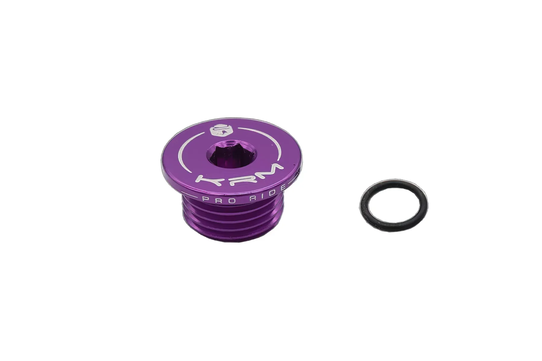 Van Franse tuning-experts KRM Pro Ride: olievulschroef voor 50cc-fietsen, typen Derbi, Aprilia, Gilera. De dop is volledig CNC gefreesd uit aluminium, heeft een hoogwaardige geanodiseerde afwerking en een lasergegraveerd KRM-logo.