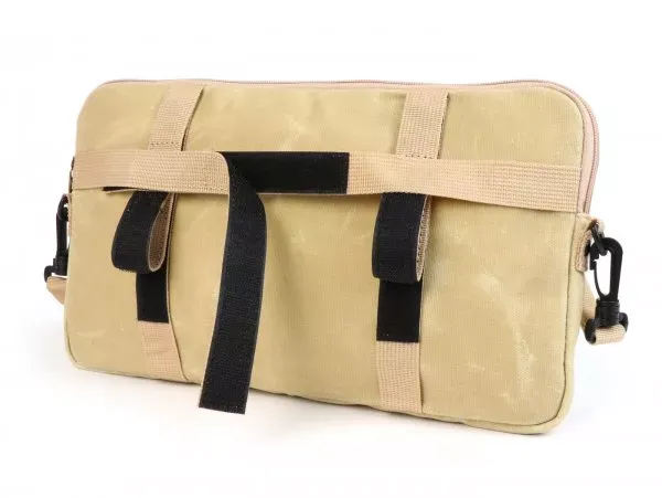 Voor wie de voorkeur geeft aan een strakke look: krassen in het gewaxte oppervlak kunnen altijd onzichtbaar gemaakt worden met een normale föhn.Materiaal tas: gewaxt canvas (waterafstotend)